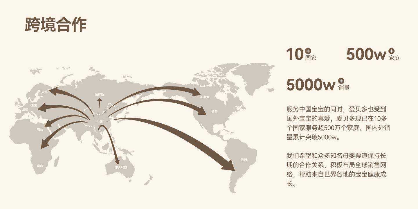 未来,爱贝多愿意与更多的妇儿医院、月子中心、幼儿园、儿童摄影等母婴领域相关机构达成更加深入的市场合作,通过产品、活动、专业指导、育儿知识等多种方式,为母婴消费人群提供育儿服务。